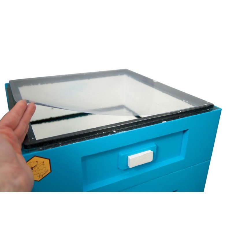 Arkusz winidurowy nieperforowany (ocieplacz) do uli Wielkopolskich 10 - ramkowych i Ostrowskiej kładzie się na ramki w ostatnim górnym elemencie ula (korpus cały lub nadstawka).